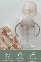 Noüka's meticulously crafted drinking range is a reliable companion for both parents and babies as they navigate this crucial milestone, ensuring more sips and fewer spills along the way! Begin the journey at birth with the 2-in-1 Bottle to Sippy Cup, featuring an interchangeable bottle nipple to silicone spout. Progress from Baby Bottle to Straw Sippy Cup at 4 months and beyond, continuing to support your baby's evolving drinking skills.