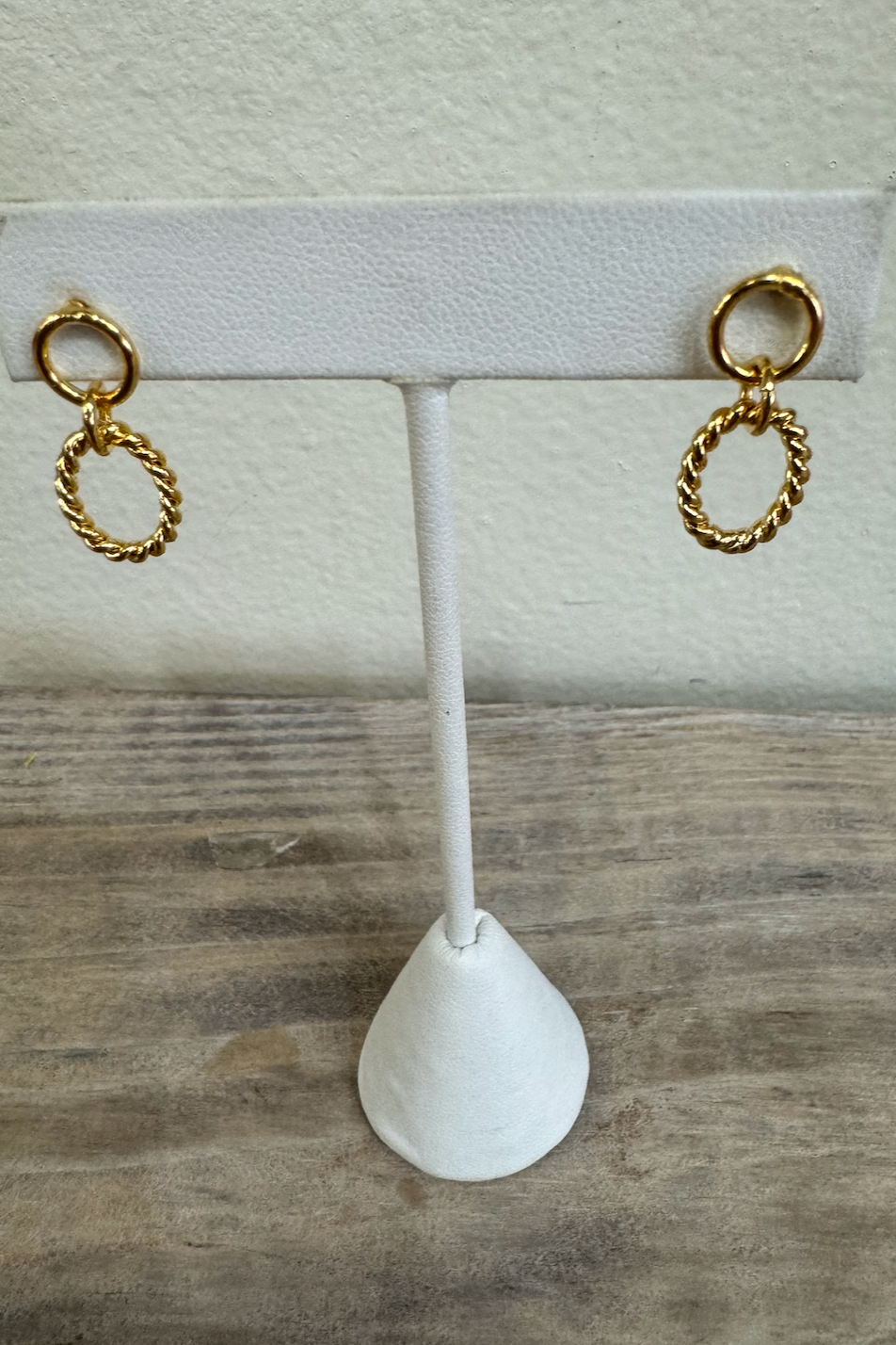 Gold stud dangle earrings with little twist