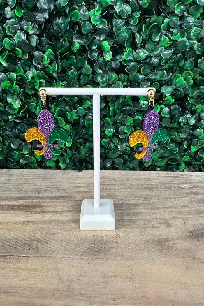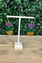 Celebrate in bold color with the Mardi Gras Earrings — glittery stacked heart dangles in purple, green, and gold. These playful statement earrings from S4 hang from gold-tone hooks and add festival-ready sparkle to any outfit. Lightweight and eye-catching, they’re perfect for parades, parties, or gifting to someone who loves fun costume jewelry.