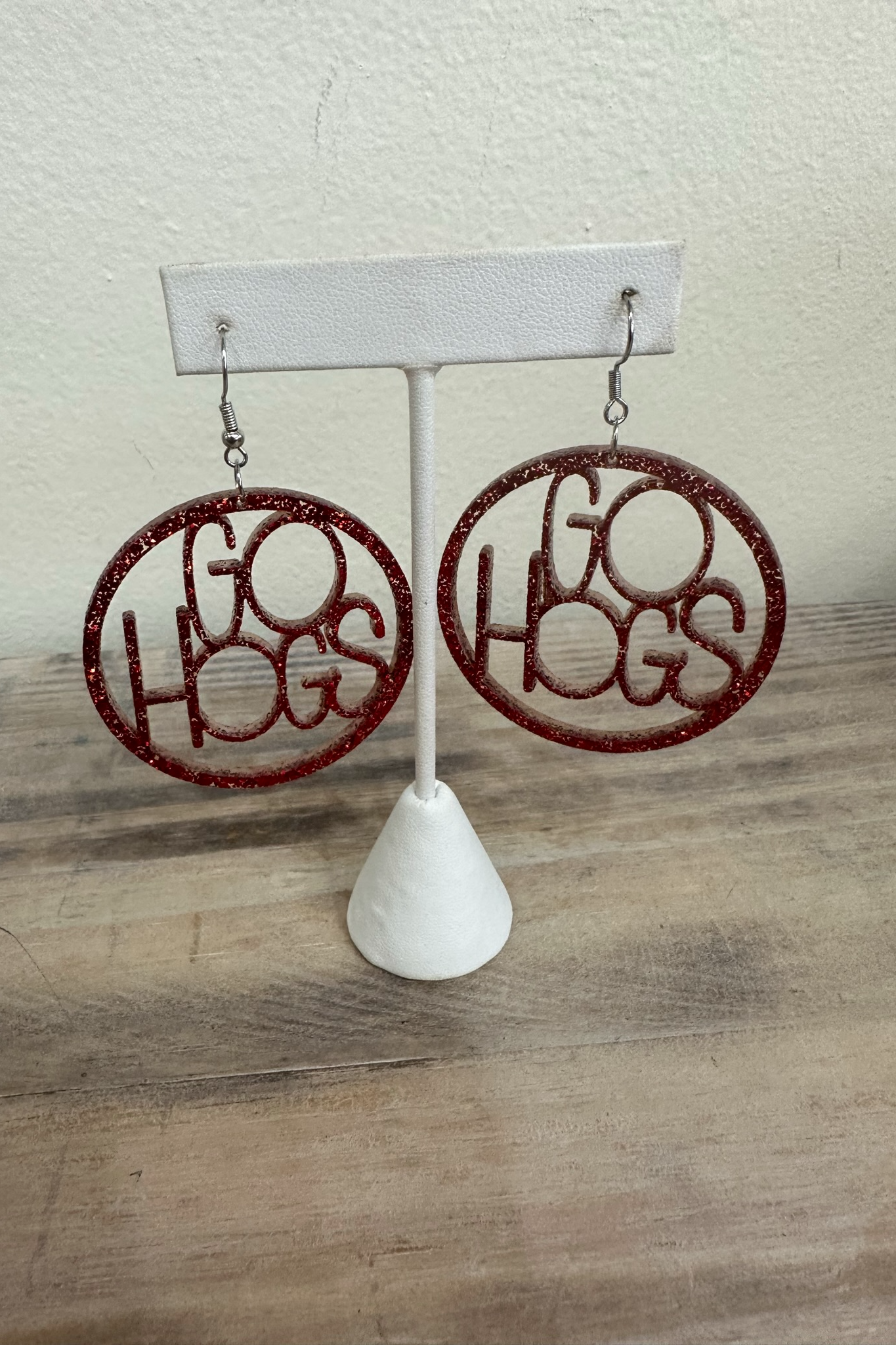 Show your Razorback pride with these sparkle dangle earrings