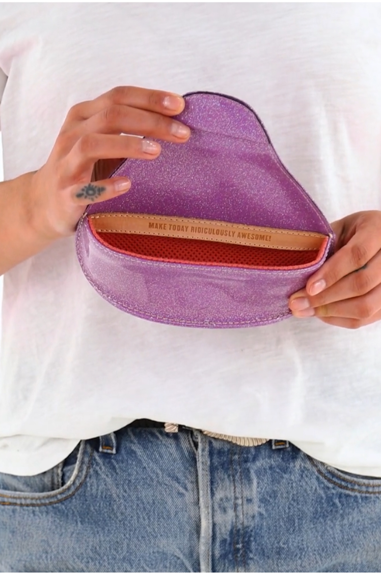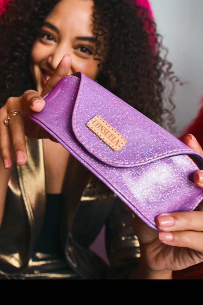 Our Sunglass Case is structured, eye-catching, and functional. This glittery case keeps your glasses well-protected and easy to spot. Secured with a magnetic closure, this colorful Sunglass Case opens and closes with ease.