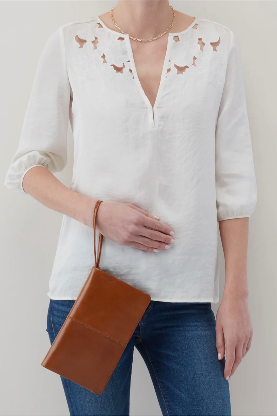 Wear as a wristlet or carry it as a clutch by tucking in the strap