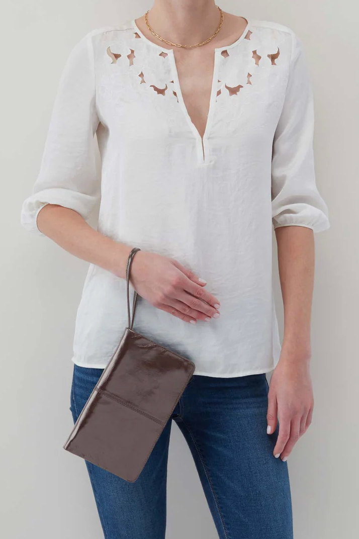 Evolve is intentionally designed with an organized interior and optional wristlet strap so you're always prepared for where the day takes you. Crafted in Polished Leather.