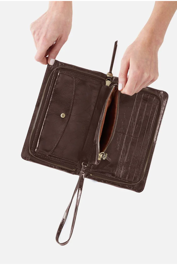 Wear as a wristlet or carry it as a clutch by tucking in the strap