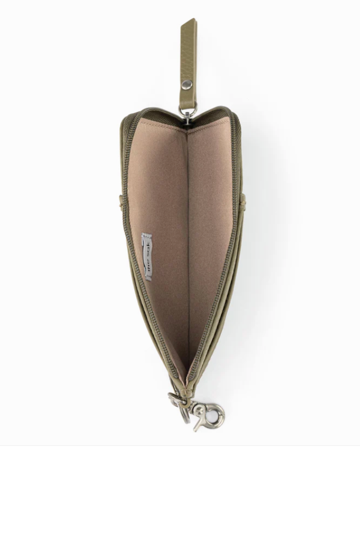 Six credit card slots and one clear ID window and side slit pockets on front and back