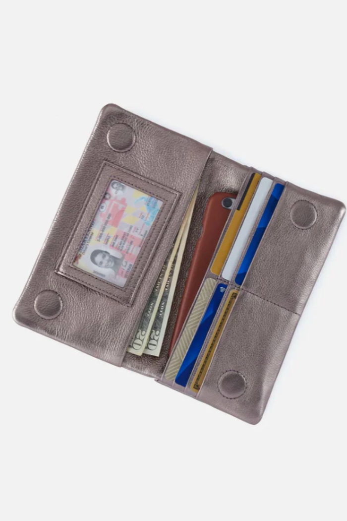 Interior Back: Bill slot, slip pocket, ID window & 6 credit card slots