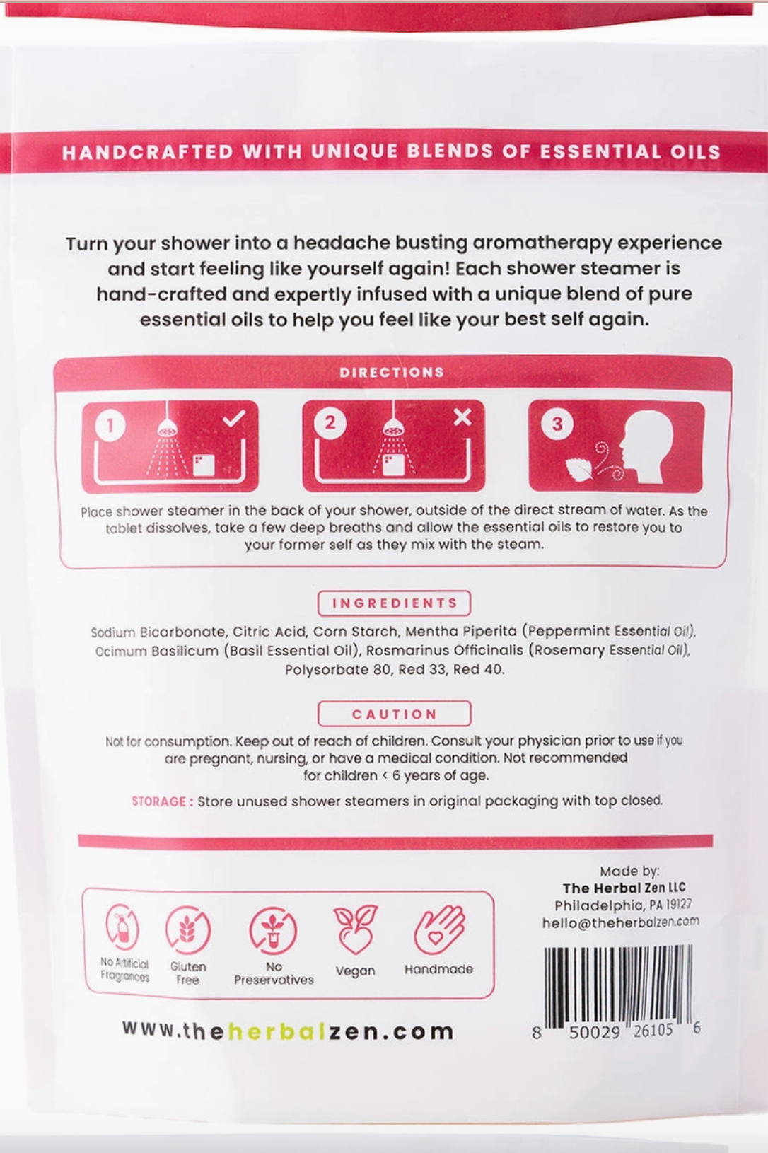 Contains: 10 steamer tablets. Each steamer lasts approx. 10 minutes if placed properly on shower floor.