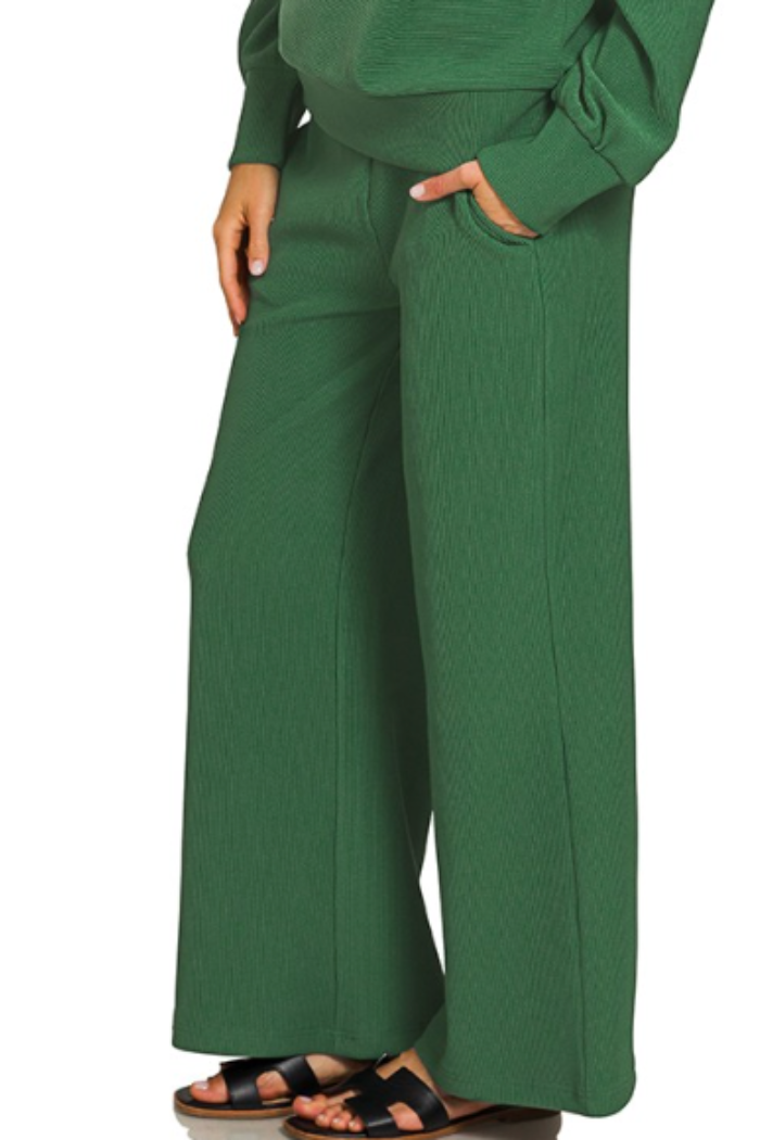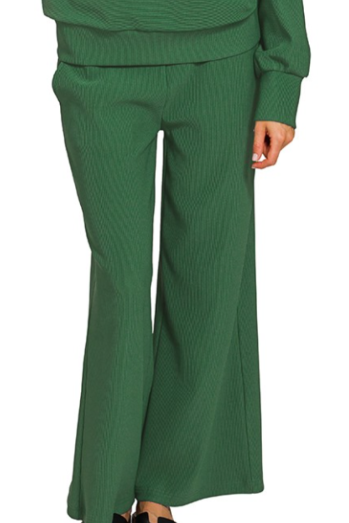 A relaxed wide-leg lounge pant cut from a soft, ribbed knit for effortless comfort. The Feeling Festive Lounge Pants drape to an ankle-length hem with a roomy silhouette that moves with you. Perfect for low-key weekends or cozy days at home, the breathable fabric keeps the look polished yet easygoing. These pants are offered by Zenana and pair seamlessly with matching tops or simple tees.