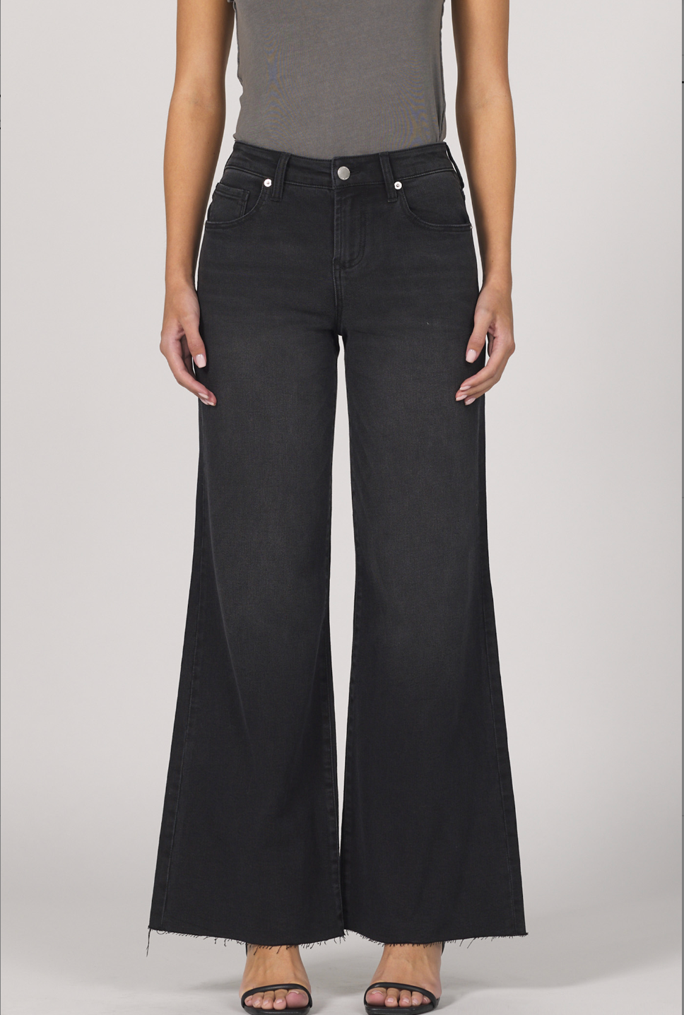 Perfect your ensemble with the Micah wide leg jean in Jetset wash, with its mid-rise fit and cut-off hem.