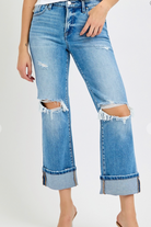 TUMMY CONTROL MID RISE CROP STRAIGHT CUFFED JEANS