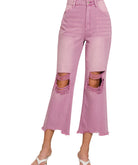 WASHED DISTRESSED KNEE AND HEM CROPPED PANTS