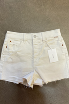 Sea salt color raw hem jean shorts. 3 in inseam & 11 1/2 rise.