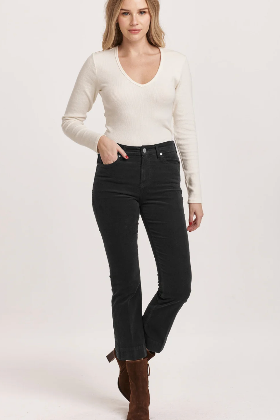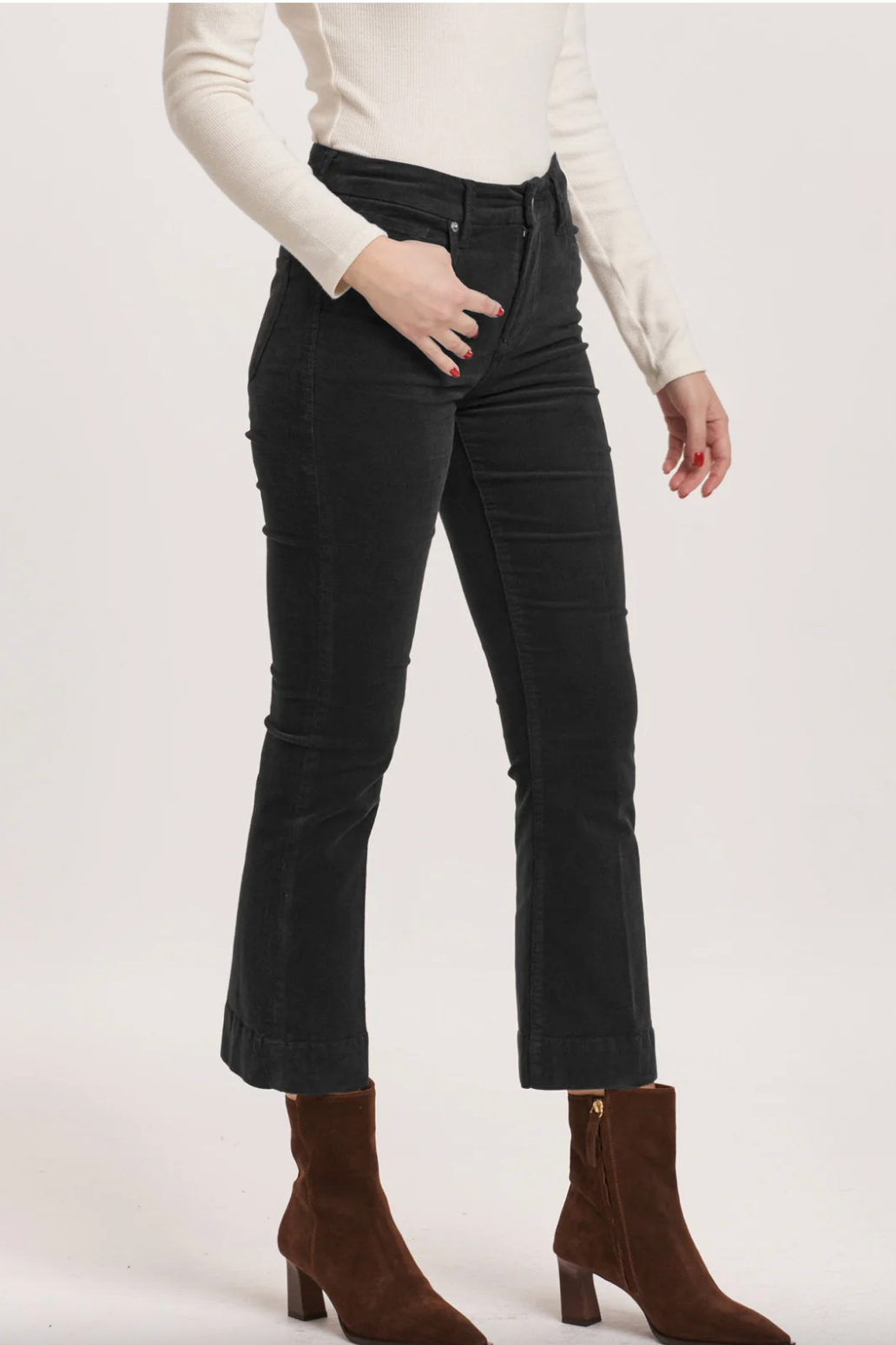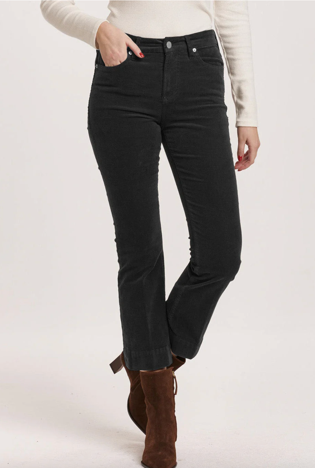 Jeanne Mid Rise Corduroy Black Cropped Flares
