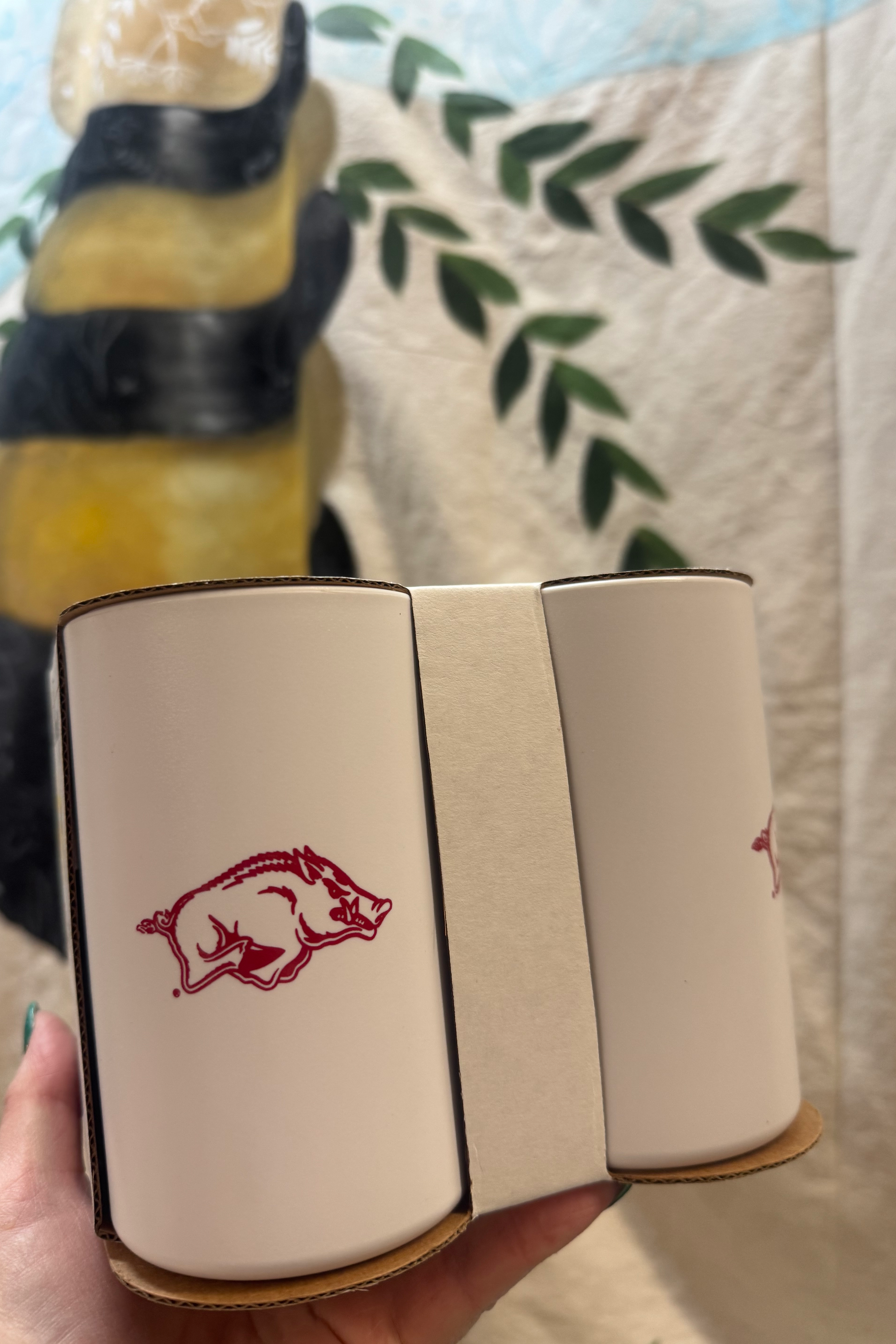 Our best-selling colorful Bentley plastic drinkware line now comes emblazoned with the University of Arkansas logo on our matte white drinkware with an eye-catching red Hog outline. Add a touch of school spirit to any occasion with our worry-free Collegiate plastic tumblers and accessories. They’re the perfect choice for entertaining indoors, outdoors, and even game-day tailgating!