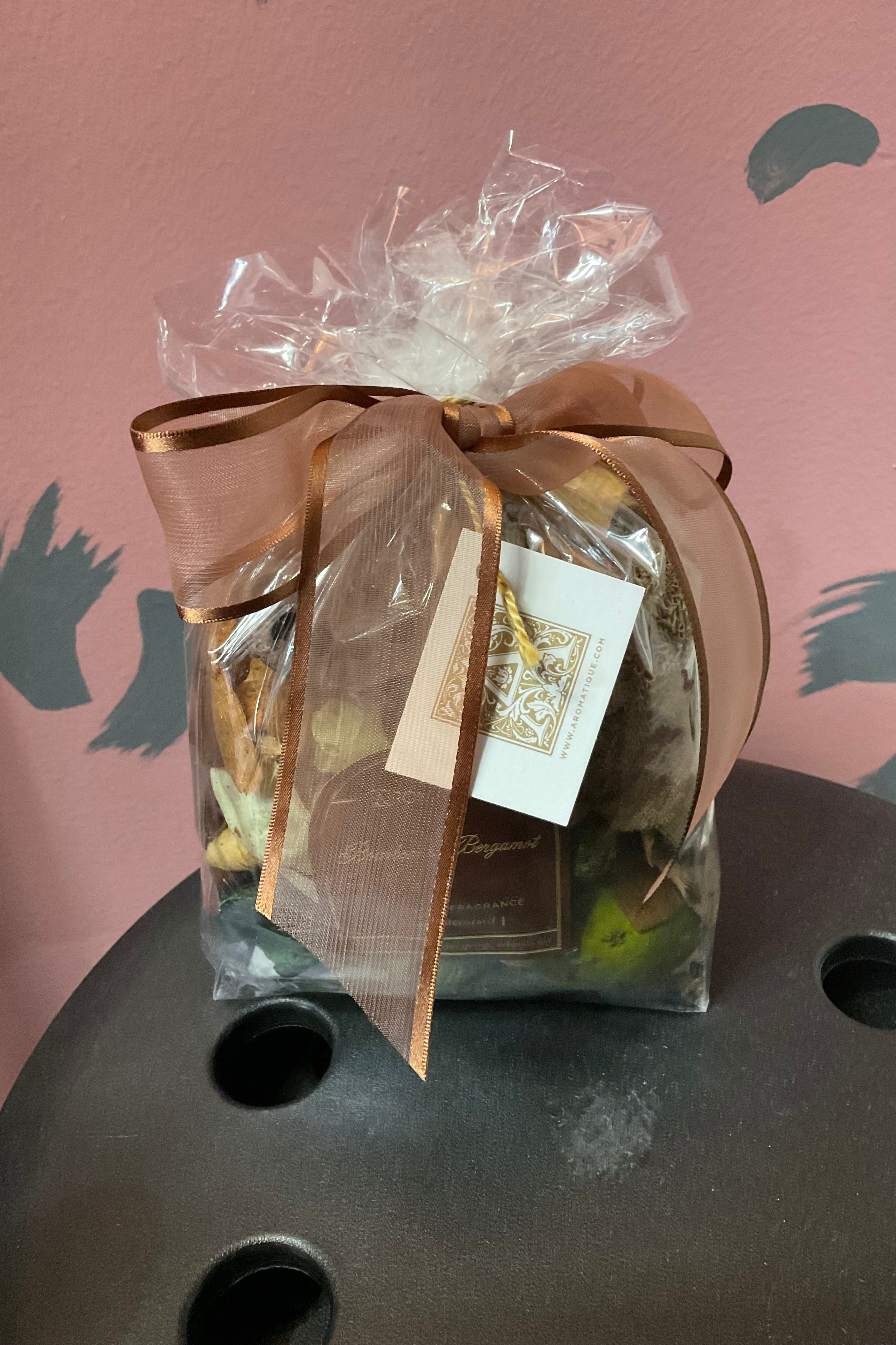 Bourbon & Bergamot Decorative Fragrance is the ideal fragrance in any space. The Standard Bag is our iconic Decorative Fragrance Style. Using sponge mushrooms, rattan berries, and pinecones, this decorative fragrance adds a warm, comforting touch to any space. Bourbon & Bergamot instantly refreshes a room with bold citrus softened with cashmere musk and hints of bourbon.