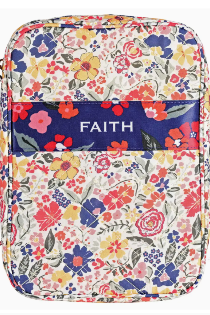 This Floral Quilted Cosmetic Pouch is a compact, zip-top case designed to keep makeup and small essentials organized. The pouch is crafted from quilted canvas with a colorful floral print and a matching wrist strap for easy carrying. Its roomy interior and structured shape make it ideal for travel, gym bags, or everyday touch-ups.