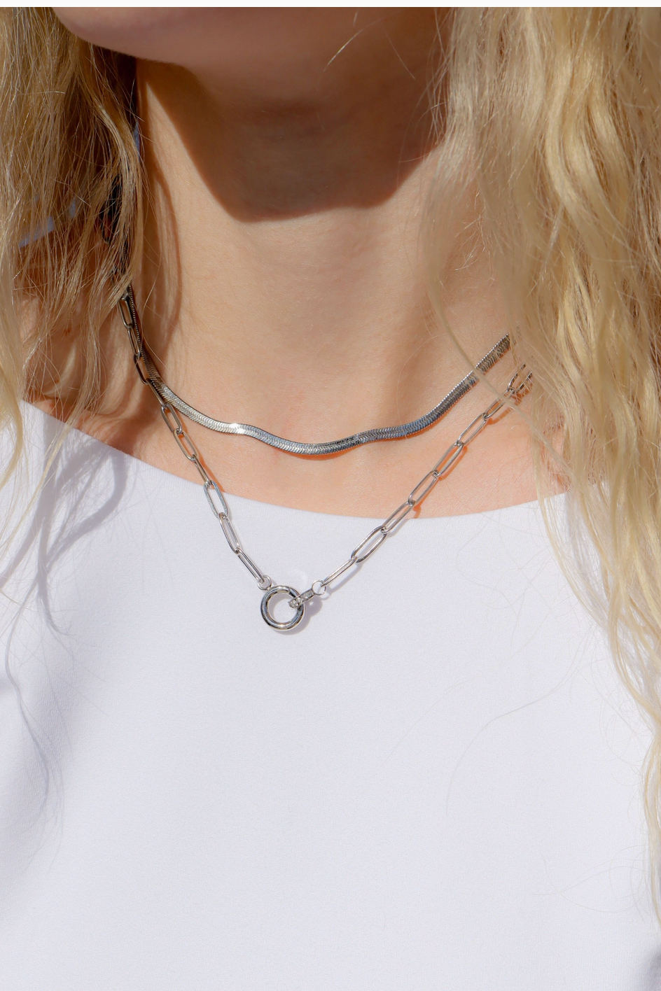 Charm Bar Paperclip Necklace with Rhinestone Carabiner
