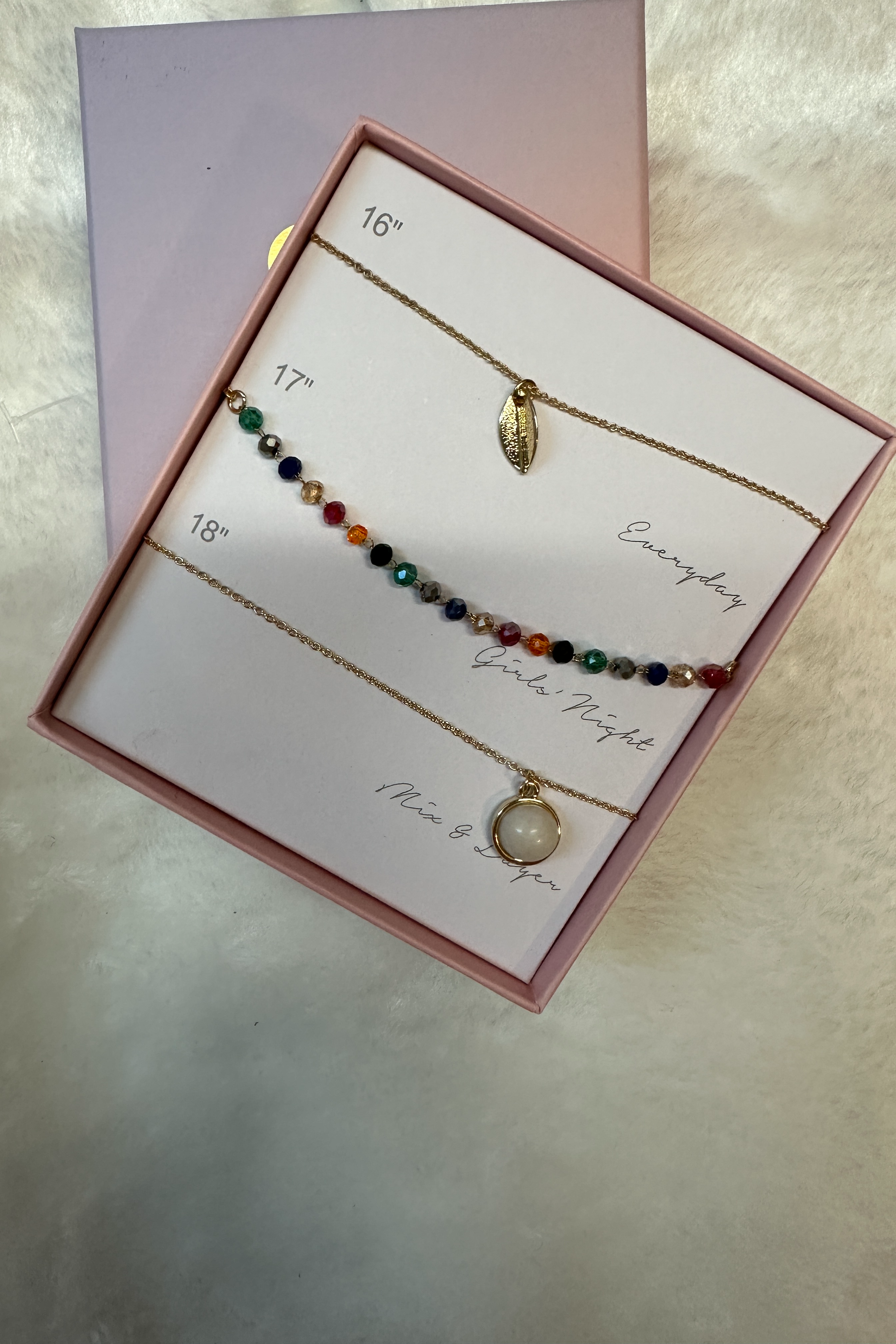 Boxed set of 3 necklaces, one for every occasion, makes the perfect gift or keep for your self