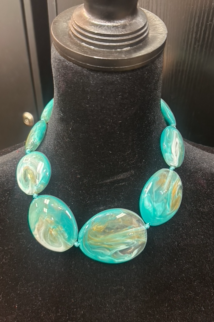 Make a statement in this marbled light weight stone shaped necklace