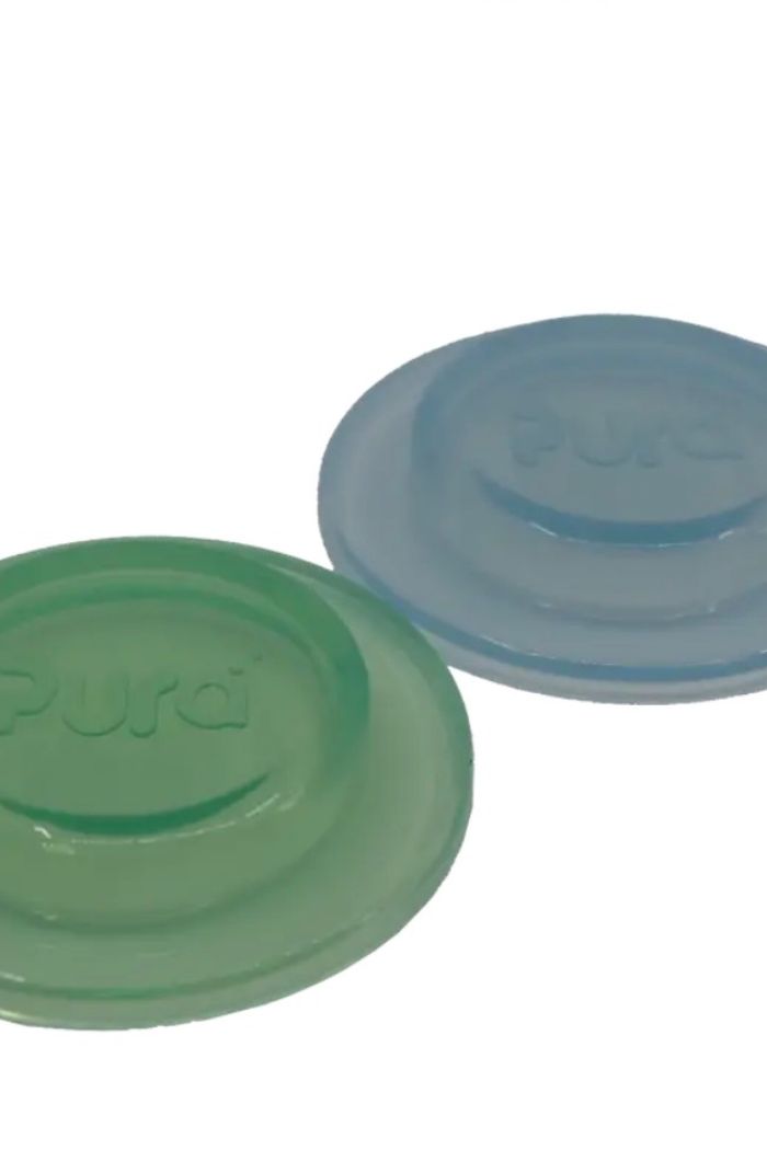 A pair of sealing lids designed to convert or close compatible Pura stainless bottles and sippy tops. The Kiki Sealing Lid by Pura Stainless provides a soft, flexible silicone seal that helps prevent leaks when transporting baby bottles. Each lid is low-profile and easy to press into place, available in translucent pastel colors. These durable seals are simple to clean and built for everyday baby feeding use.