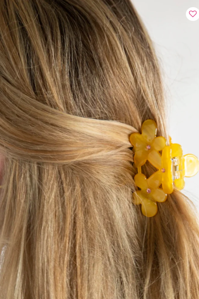 We love this Blossom Cluster Hair Claw! It's a flower-shaped, acetate claw that has beautiful rhinestones for a little sparkle! Create an elevated hairstyle with this hair claw! Wear it with a casual tee to a lunch with friends or as a finishing touch with a dress for a special occasion!
