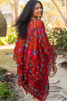 beautiful print and colorful tassel trim! Perfect for layering over a cute top and jeans or a swimsuit!