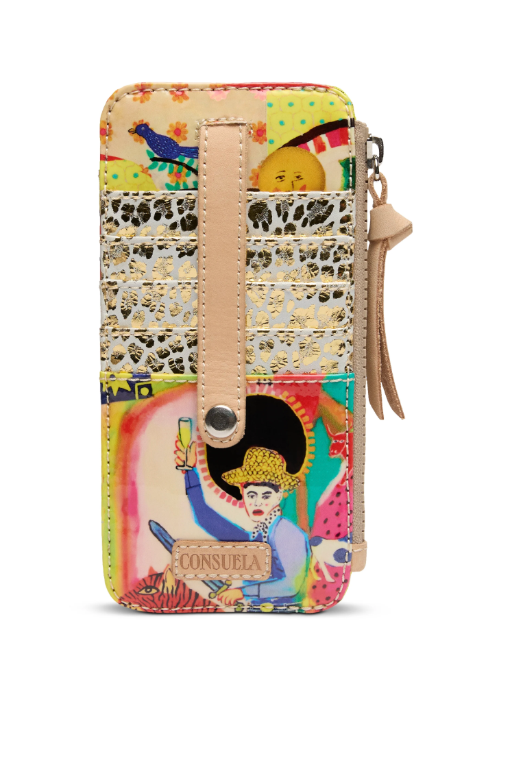 Keeping things light and easy, the card organizer is perfect for credit cards and folded bills. This colorful wallet’s snap-closure and zipper compartment provides security while you take on the day.