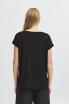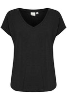ICHI V-Neck Tee is a relaxed short-sleeve top with a subtle speckled knit and a flattering V neckline. The lightweight fabric and boxy silhouette make it an easy everyday layer that pairs with trousers or denim. gives this tee a minimalist, modern feel ideal for casual or office-casual looks.