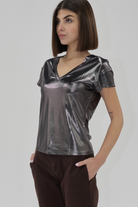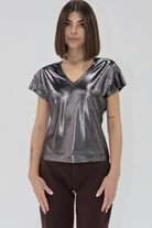 V-NECK RELAXED FIT METALLIC TOP