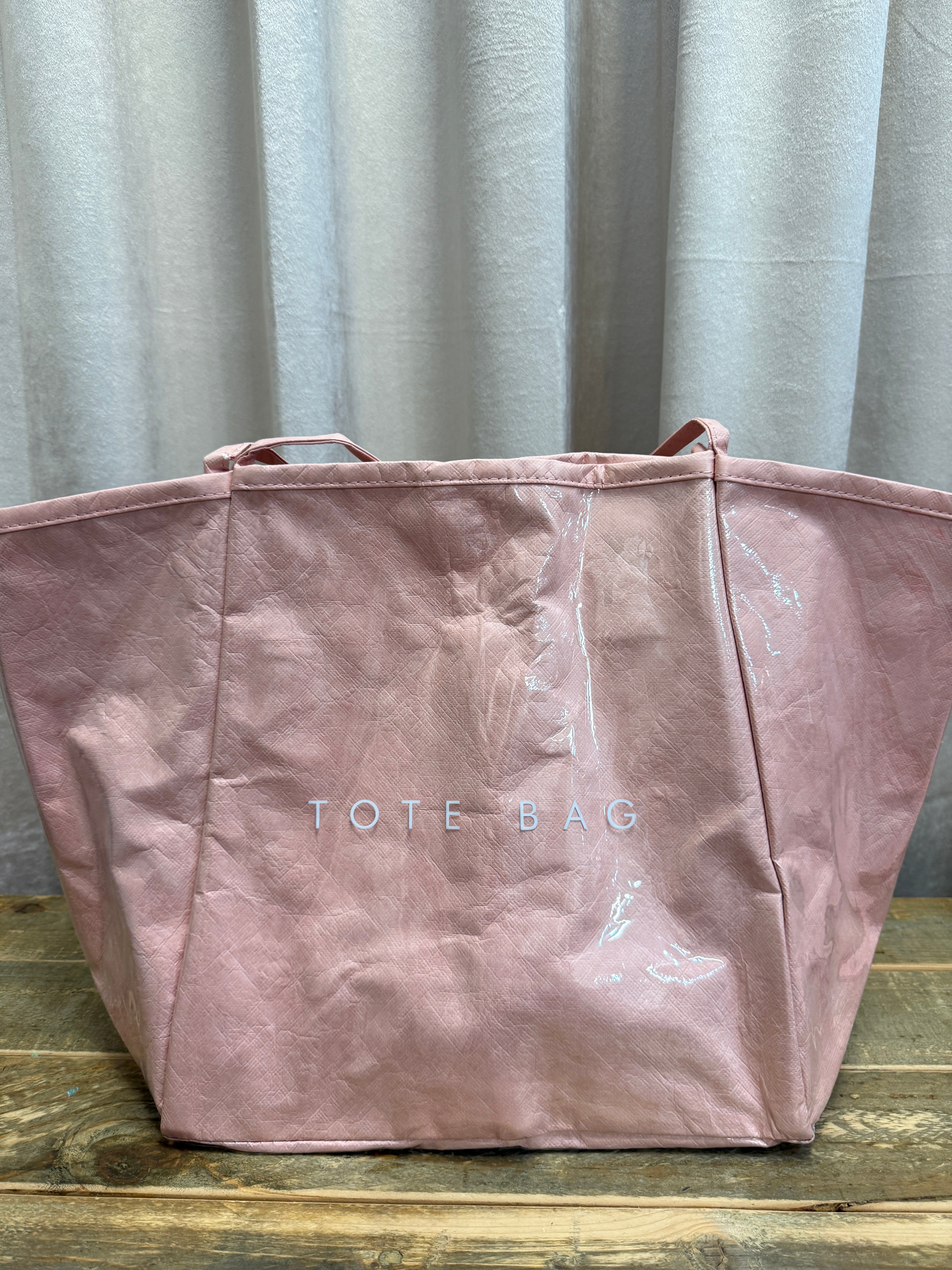 Perfect for errands and beach days, the Shimmer Tote Bag is a roomy, open-top carryall with a glossy pink finish. Features a coated, shimmery surface and simple top handles for easy shoulder or hand carry. Its boxy silhouette and generous base make it ideal for market runs or a laid-back vacation. Lightweight construction wipes clean for casual, off-duty use.