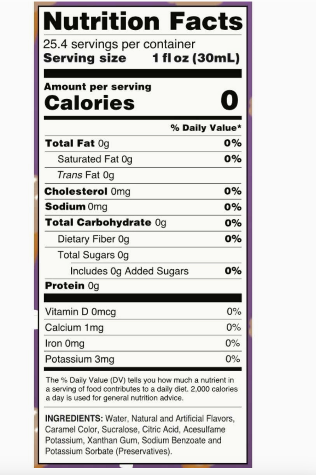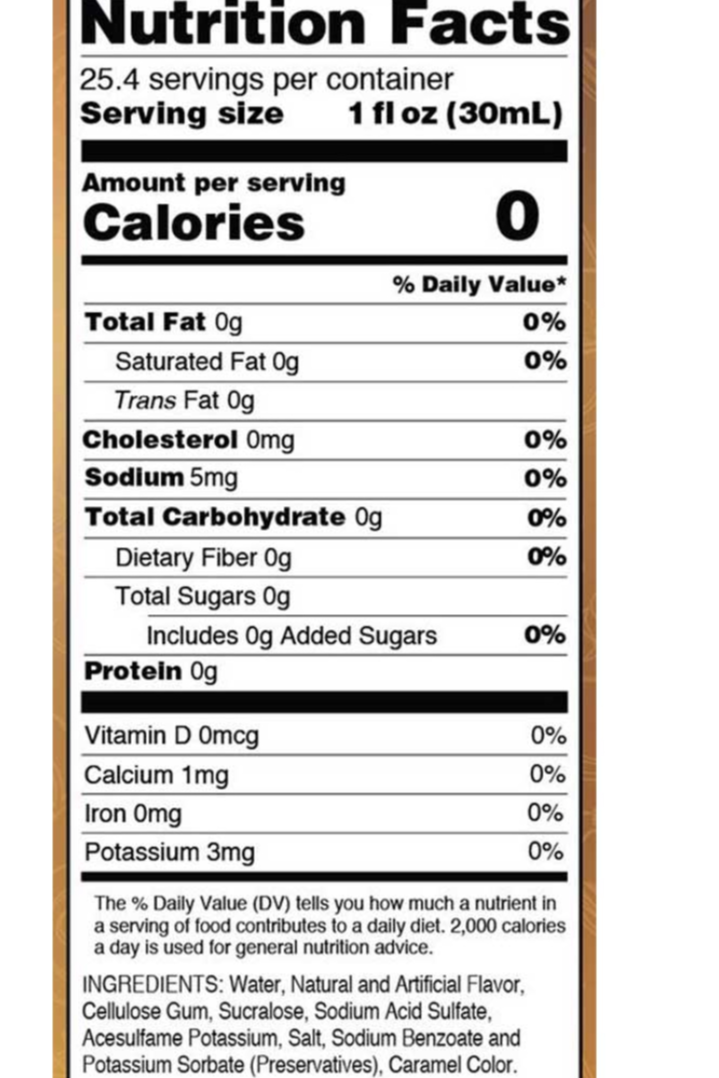 Skip the guilt and add flavor to your favorite drink, dessert, coffee and more. 750ml (25.4 oz) 0Calories 0sugar