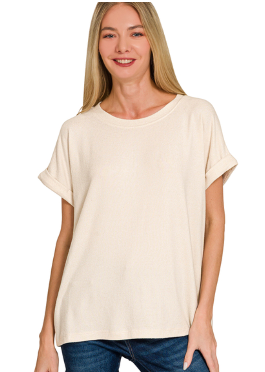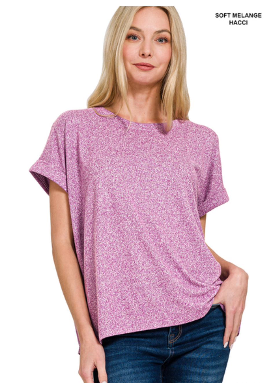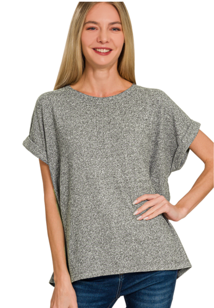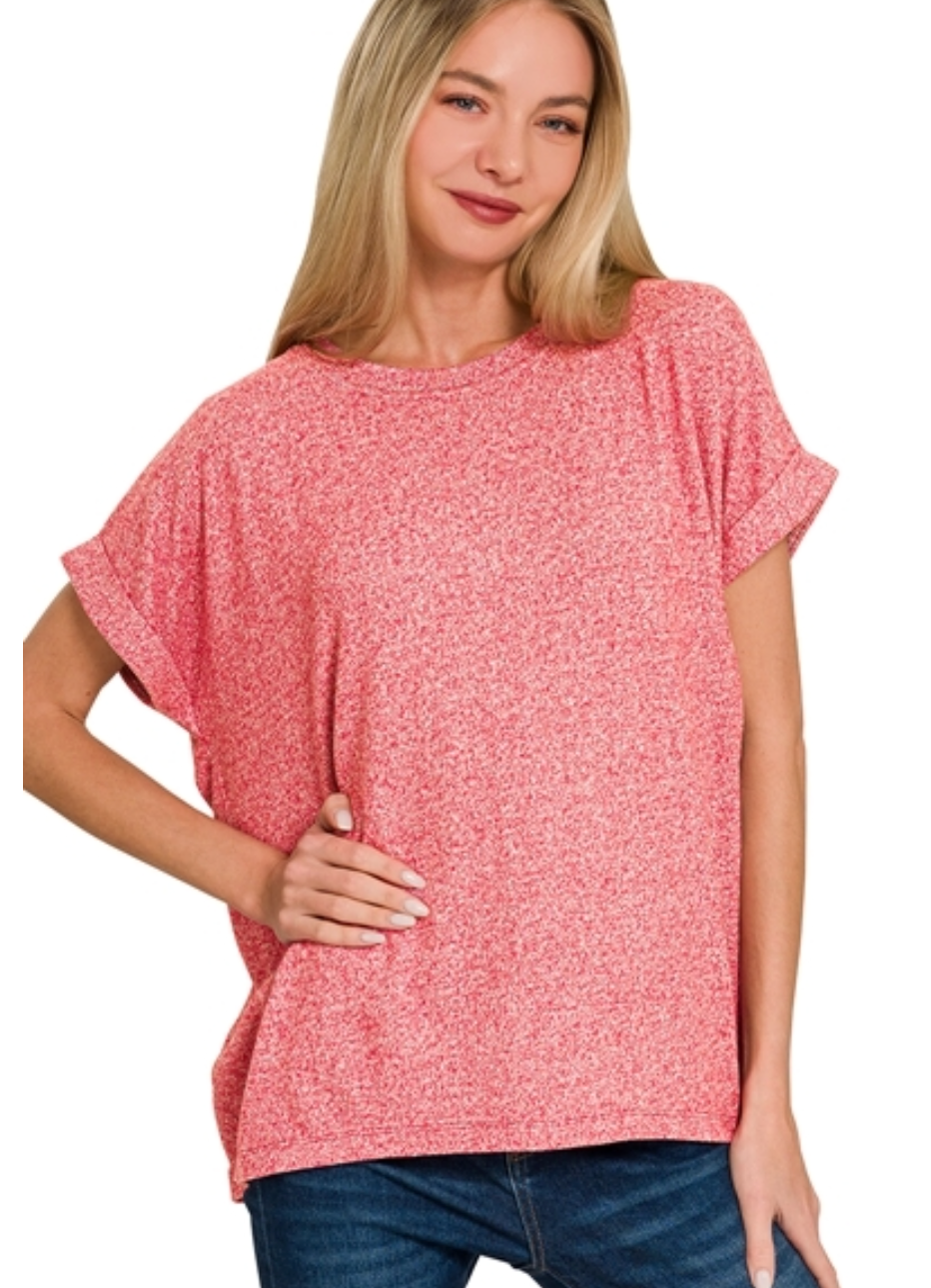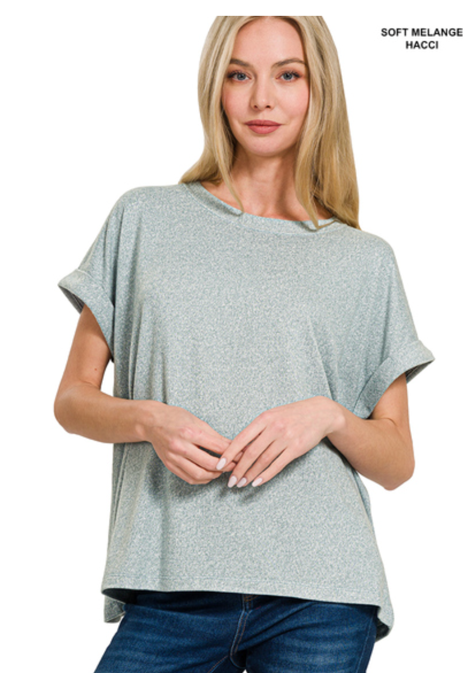 SOFT MELANGE SHORT SLEEVE ROUND NECK TOP