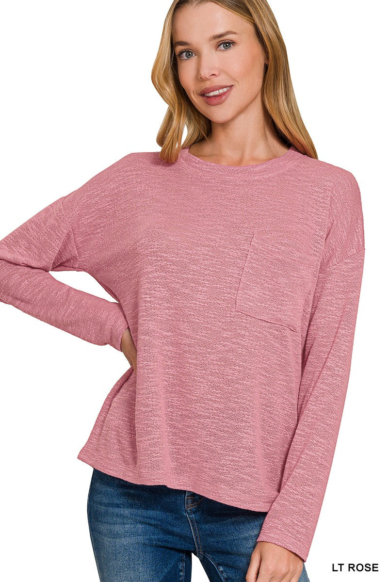 Effortlessly relaxed, the Long Sleeve Pocket Tunic Top is a slouchy knit ideal for everyday wear. This tunic features a scoop neckline, long sleeves and a single chest patch pocket for subtle detail. The lightweight textured fabric drapes softly over jeans or leggings for an easy casual look. Layer it under jackets or wear solo for comfortable weekend styling.