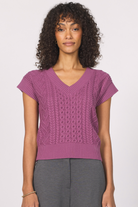 The SCOUT cable knit sweater vest, cap sleeve v-neck with self rib band. Everyone deserves a little treat! That you are... Solid color yarn on standard fit.