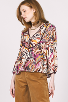 3/4 SLEEVE CONTRAST DETAIL TOP 100% RAYON