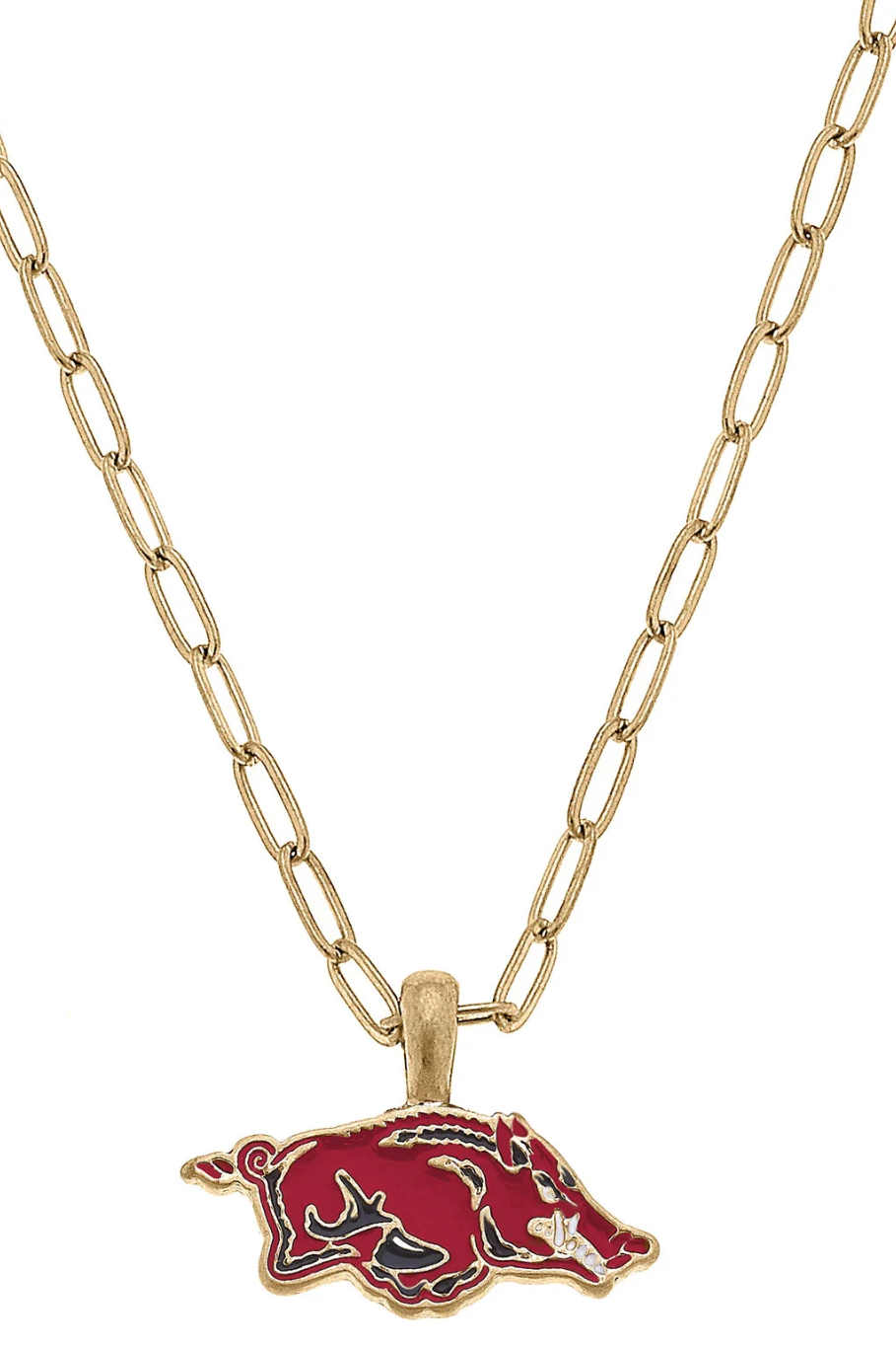 This pendant necklace is the perfect piece to show off your school spirit! Its small pendant features the University of Arkansas logo in enamel material and makes an excellent gift for the Razorbacks superfan.
