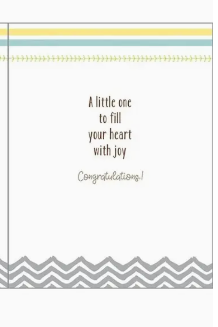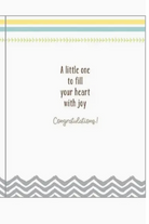 Greeting card with envelope. A little one to fill your heart with joy Congratulations!. Folded size: 4.25 x 5.5". Art by Carol Kortus. Printed on FSC Certified paper in the USA.