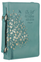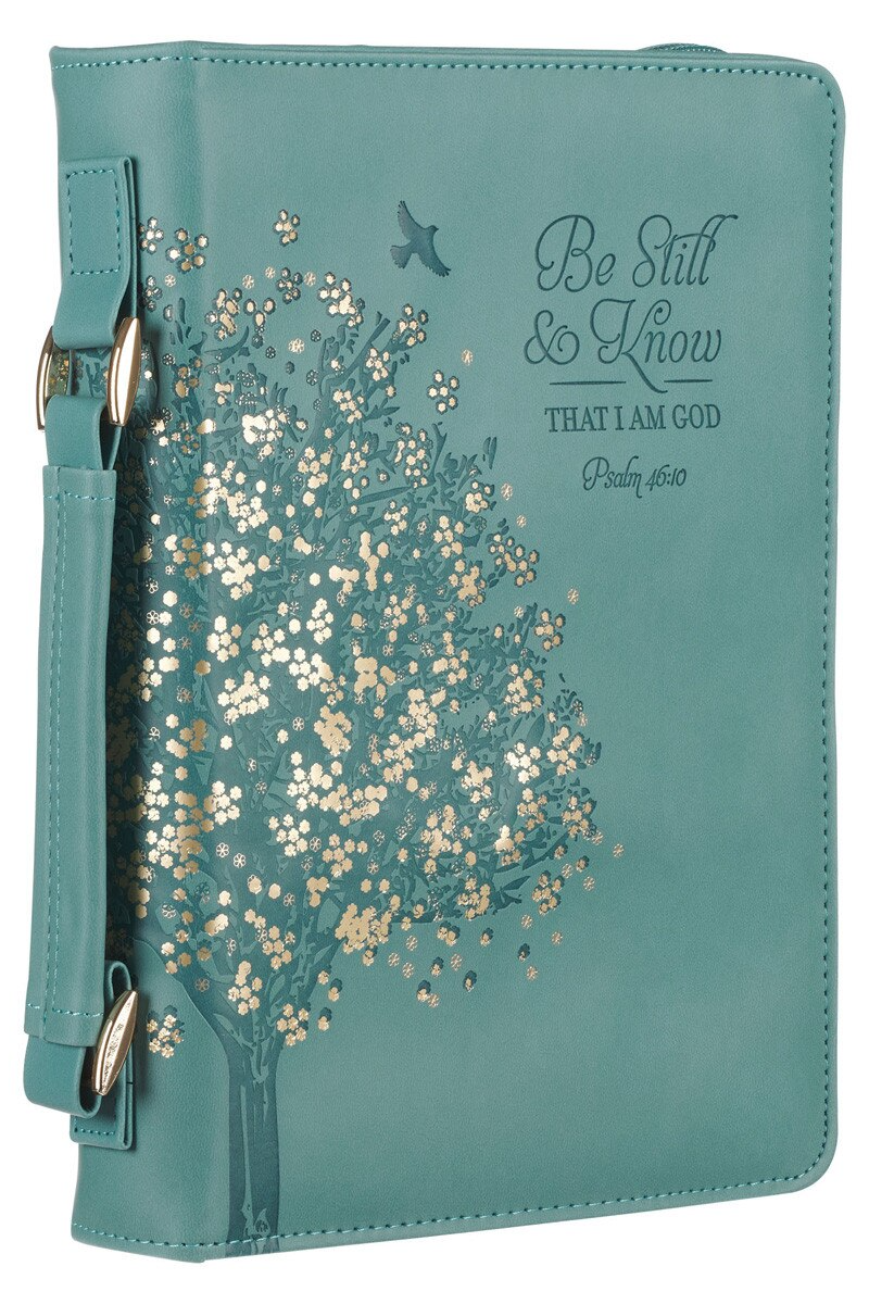 When your hands are already full with little ones, the Be Still and Know Teal Faux Leather Fashion Bible Cover is the ideal accessory to carry your Bible effortlessly and keep it protected from little hands, bumps, and moisture.