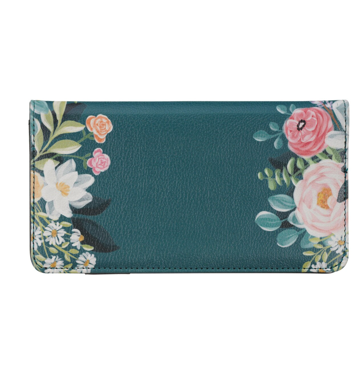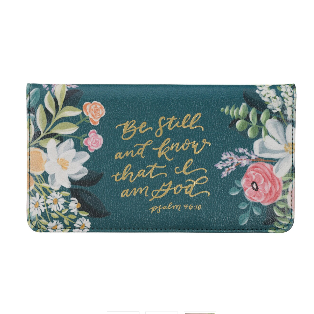 Experience the perfect peace of Christ when you heed the words of the Be Still Teal Floral Faux Leather Checkbook Wallet. This elegant wallet is designed to remind Christian women to pause and recognize God's sovereignty in all things.