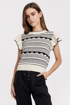 RUFFLE SLEEVE STRIPE SWEATER TOP