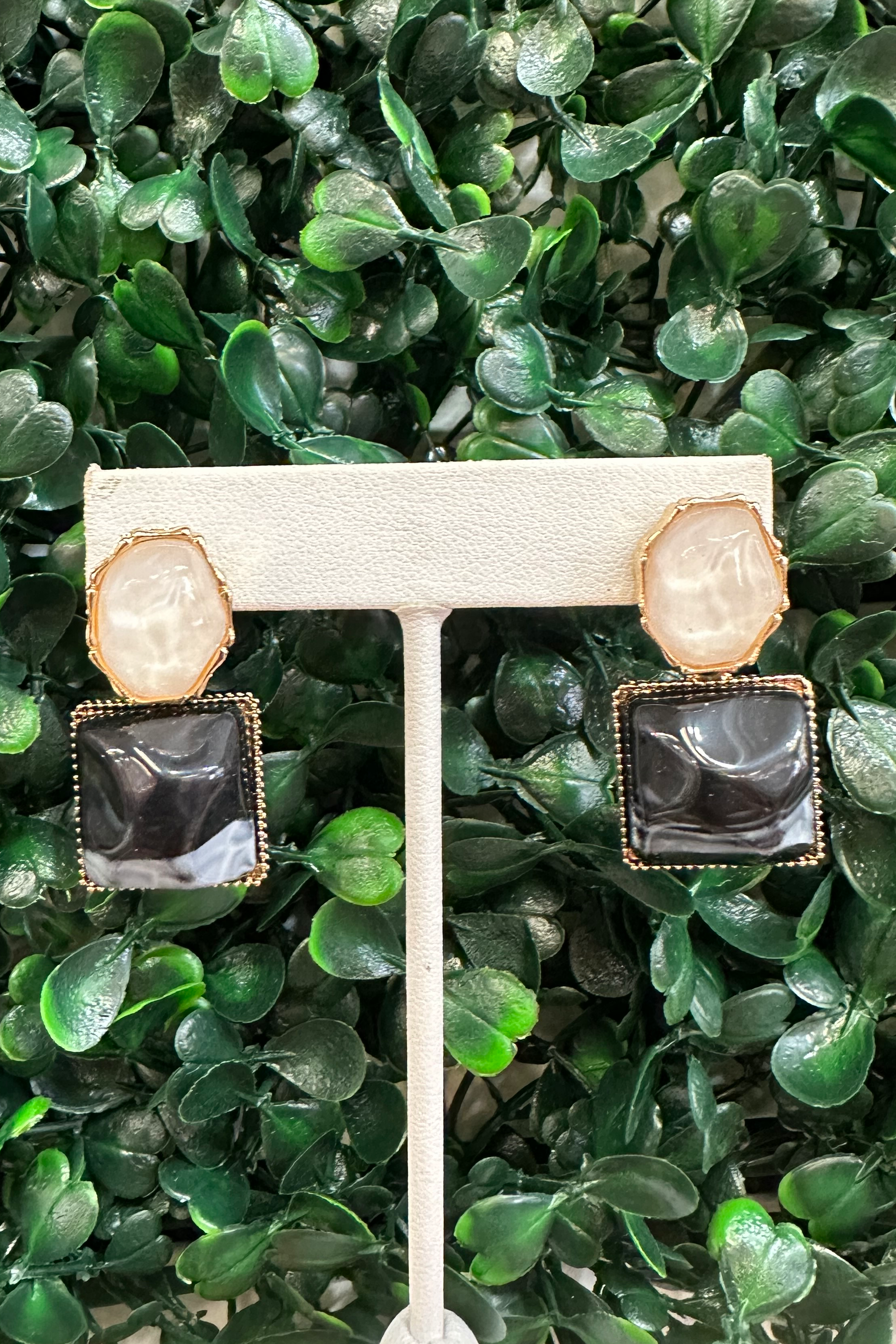 This black marble stone in these droozy dangle earrings are the perfect neutral earring.