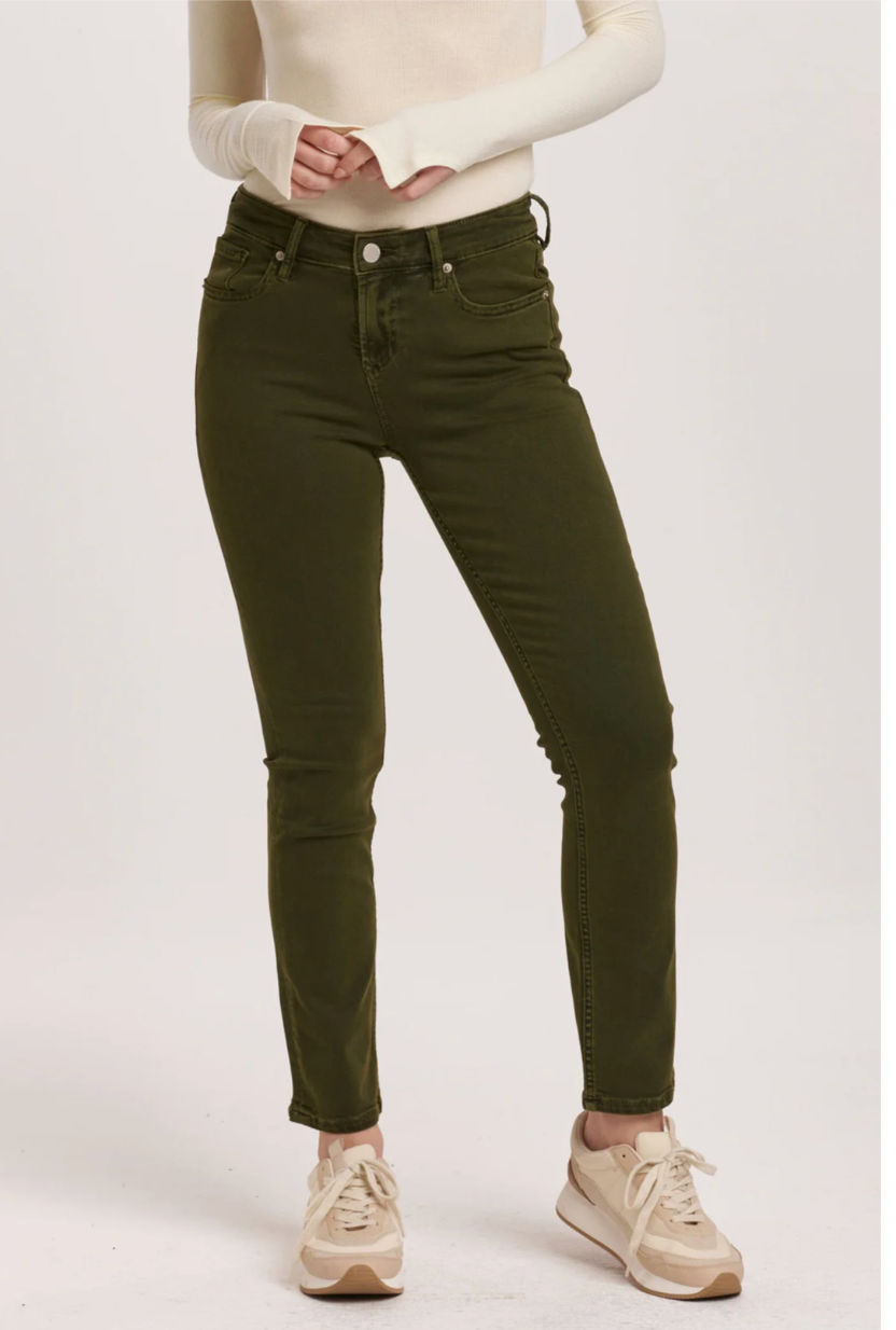 Mid rise slim straight leg jeans. The standout fit that comfortably rests slightly lower on the waist, shaping up effortlessly from the hip to mid thigh. Full inseam on stretch denim with designer color palettes, washed and brushed for softness.