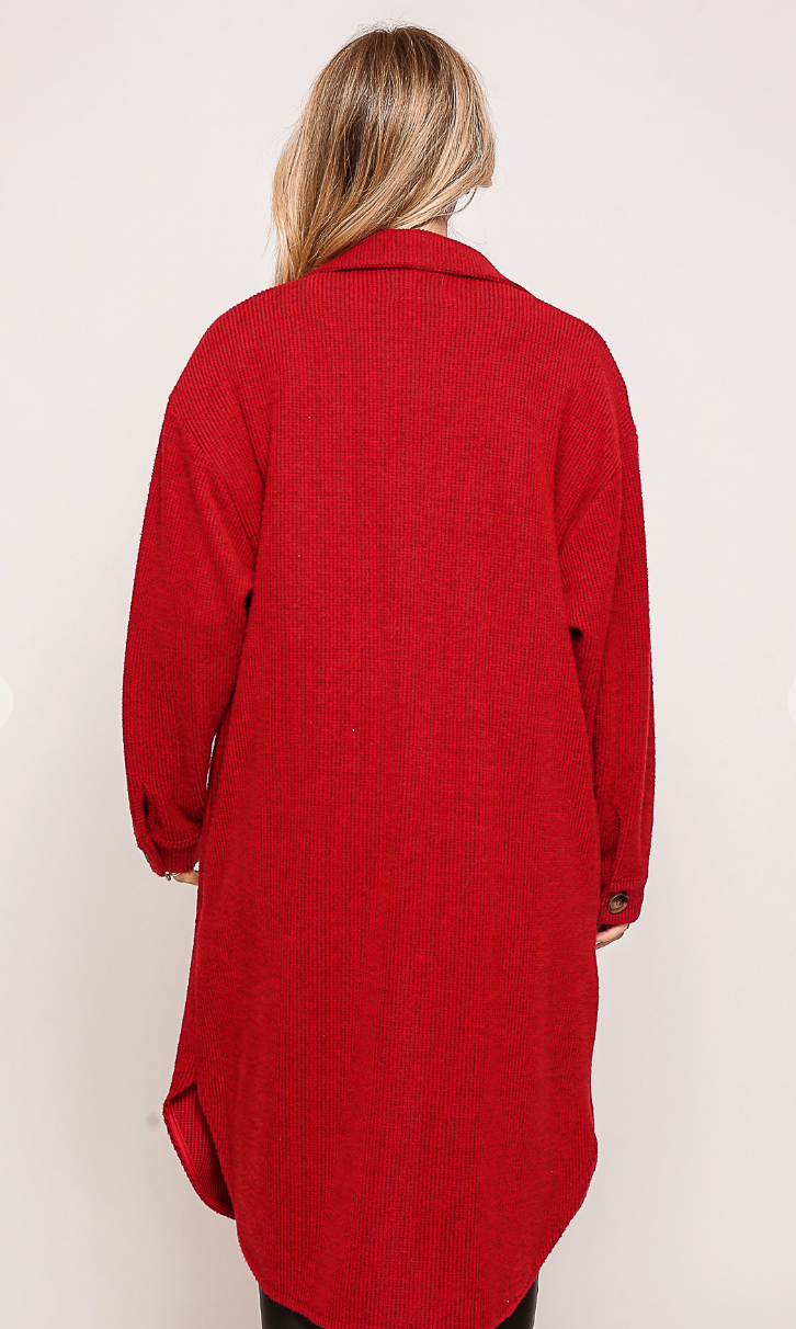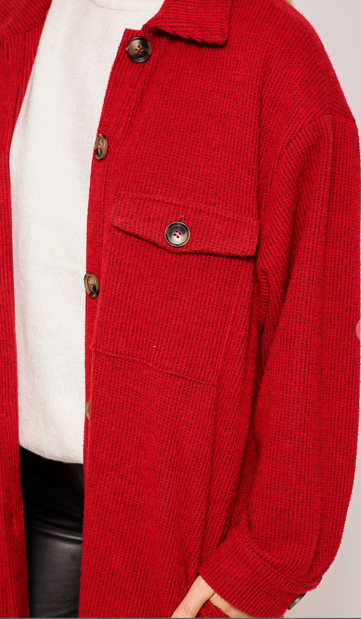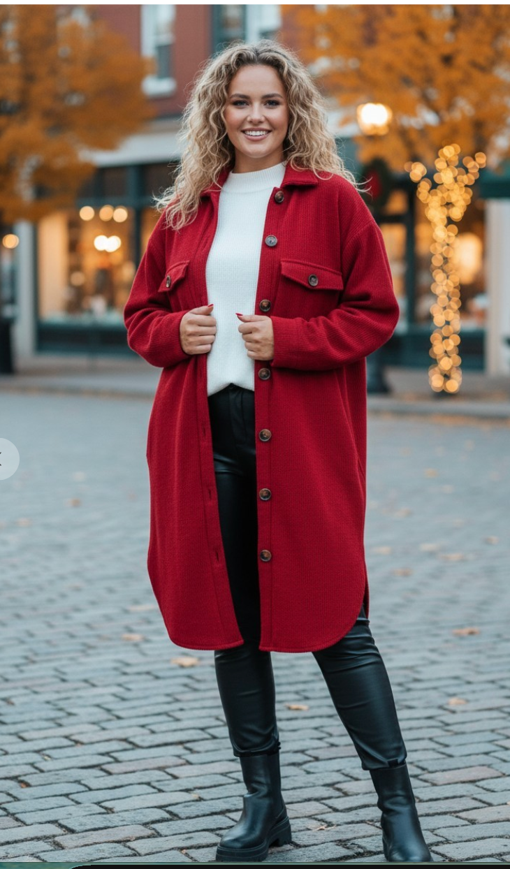 PLUS SIZE Stylish and cozy ensemble! A long-sleeved, button-down brushed waffle oversized shaket that exudes warmth and sophistication. A front double pocket casual jacket, perfect for on-the-go outings, completes the look. Don't this masterpiece and embrace effortless fashion.