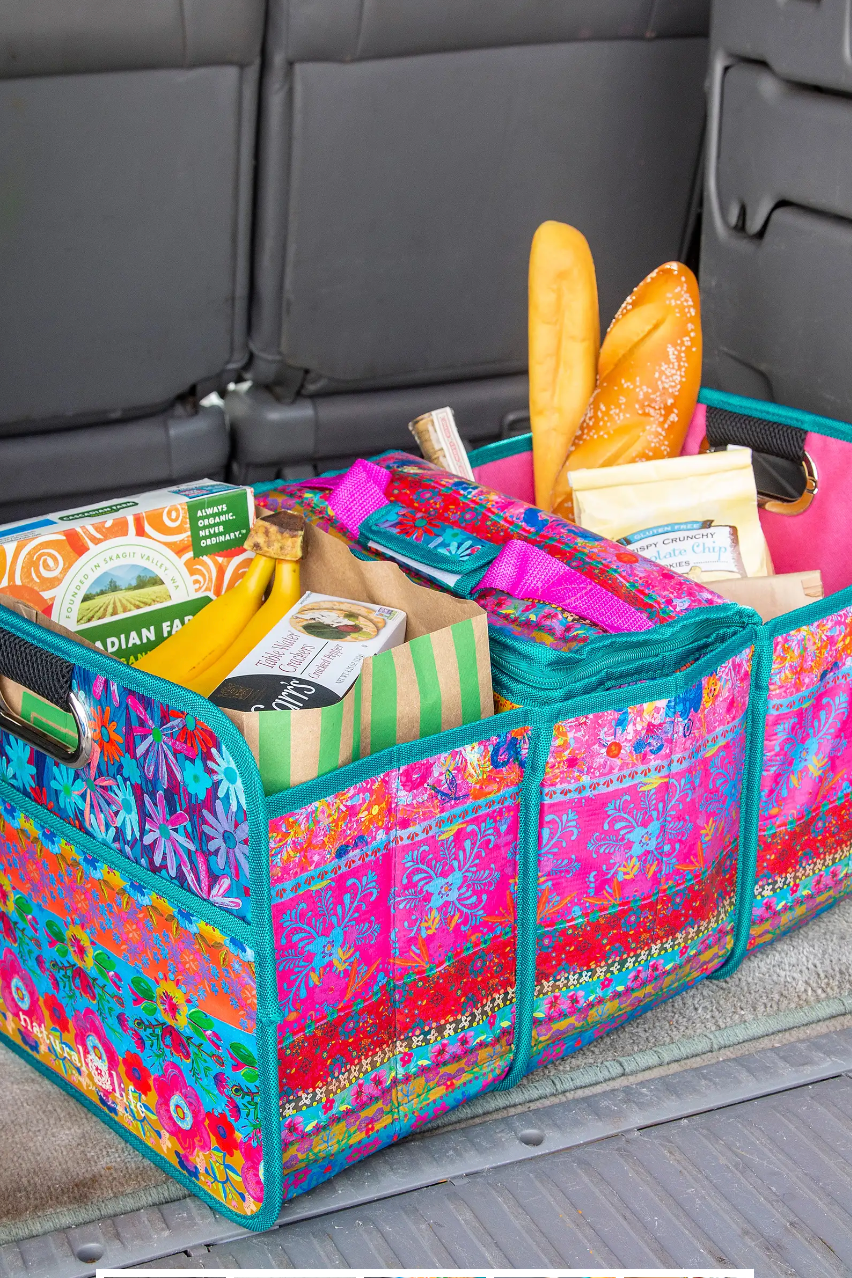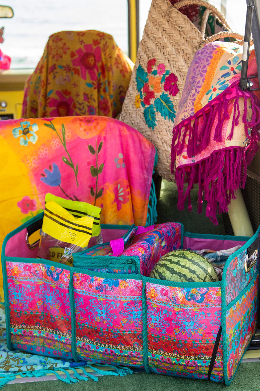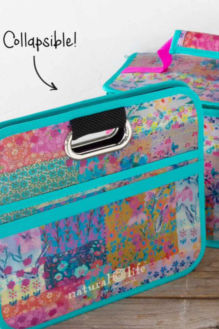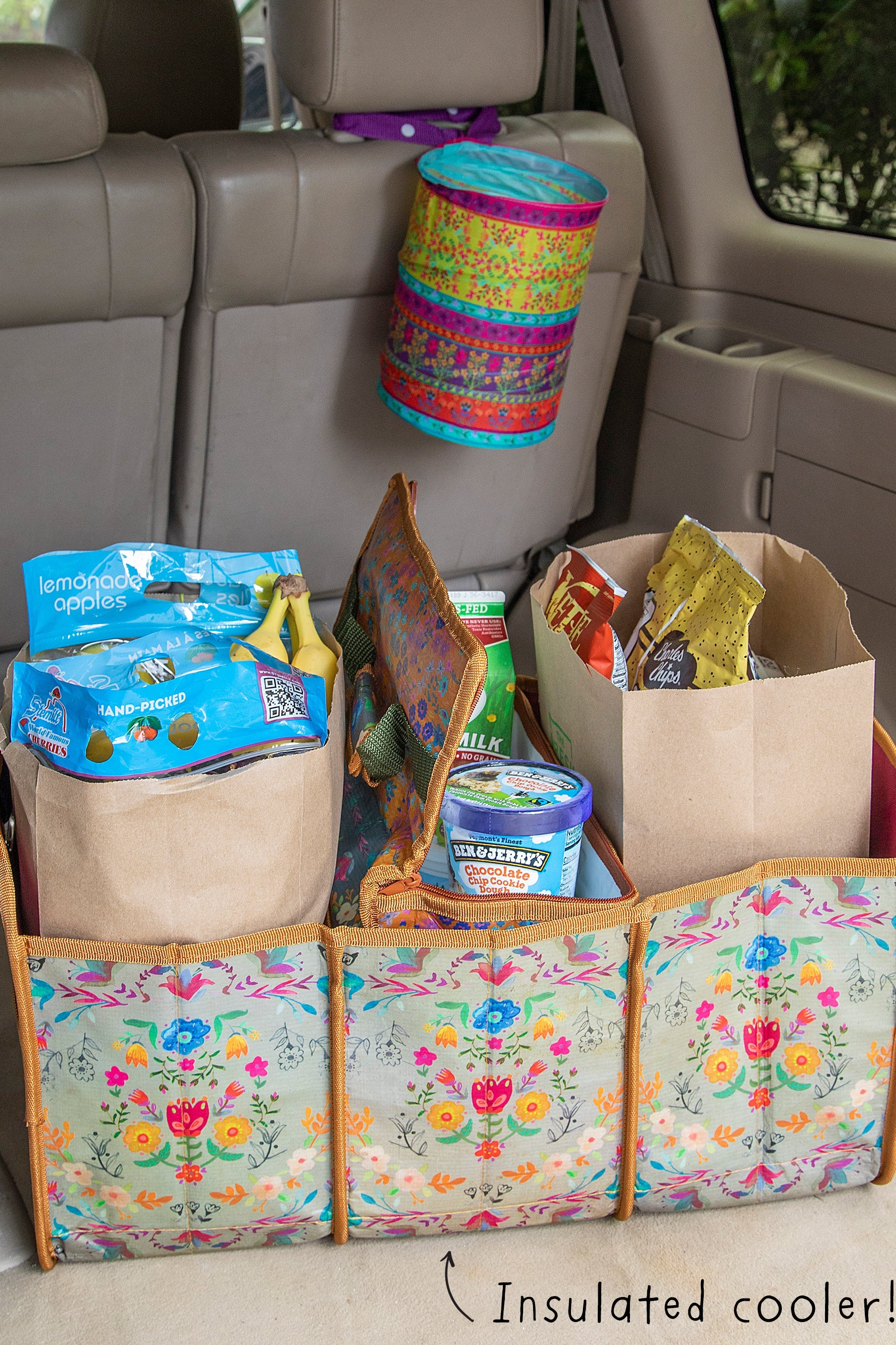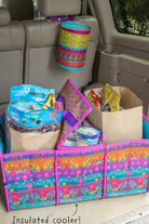 The Car Trunk Organizer is so cute and convenient! Made from recycled water bottles, this awesome accessory will declutter your car and can help keep your groceries from tumbling around in the back too! It features a removable insulated cooler that you can take with you to the beach or on picnics and is so easy to wipe clean! Oh, and it even has outer pockets to hold all your little things!