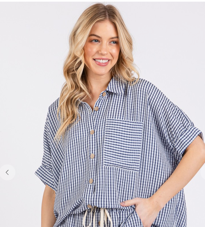 Stay effortlessly stylish with this Mini Checker Button Down Top.
