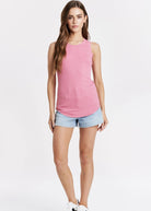 Cleo ribbed tank featuring a stylish curved hem. This versatile fitted tank provides exceptional comfort and pairs effortlessly with any outfit. Ideal for layering or wearing alone, it’s a must-have for any wardrobe. Simple crew neck design meets everyday functionality.