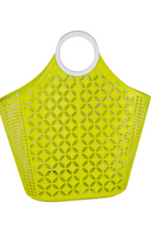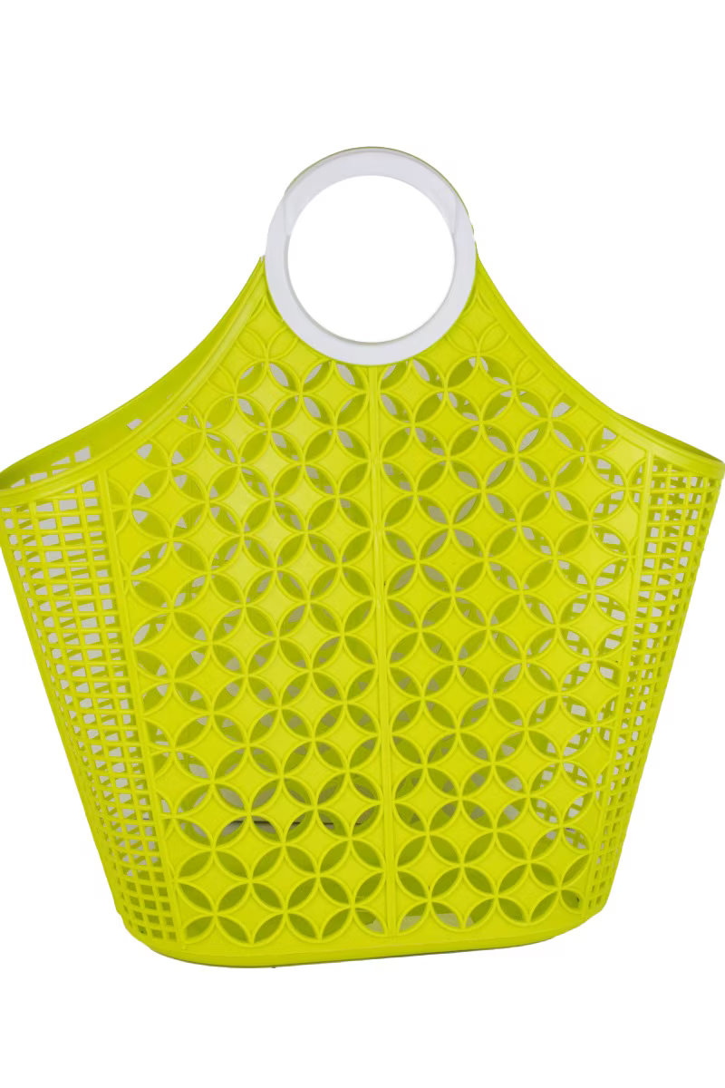 The Collins Beach Tote in Lime is the perfect bag for a day in the sun. Measuring 17x18x6.5 inches, it's large enough to hold all of your beach essentials while the vibrant lime color is sure to make a statement.