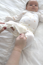 Convertible Pajama for babies - a versatile two-in-one solution, with or without footies. Made from silky soft bamboo rayon, this pajama ensures baby stays covered and cozy while making diaper changes a breeze with our exclusive DIAPER-ZiP®. Day or night, number one or number two, changes are effortless. Simply flip the footie up when your little one wants to walk. Featuring built-in optional hand mittens to prevent scratching and provide added warmth, a lap shoulder neckline for easy on and off, and only one zipper for optimal comfort, this pajama is designed for both convenience and comfort.