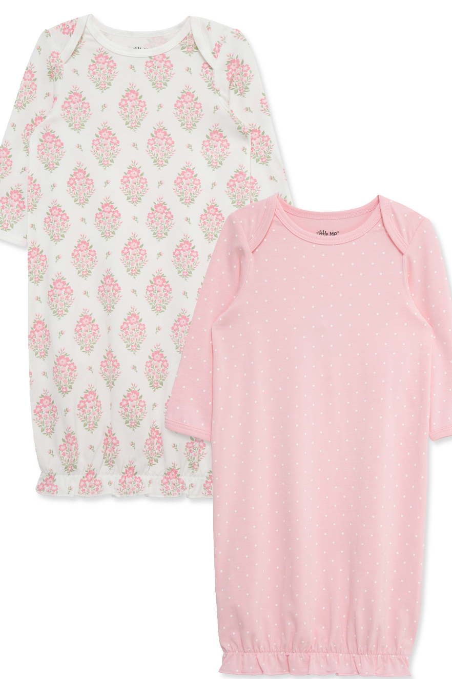 Set of 2 gowns with elastic bottoms, long sleeves, and convertible hands