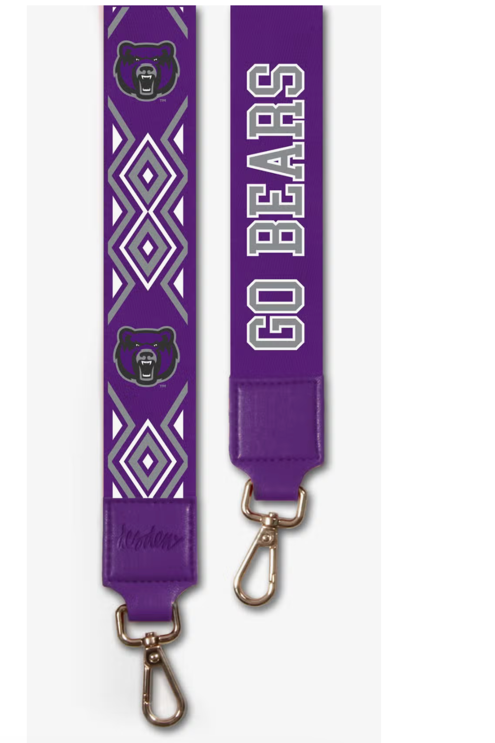 Customize your favorite bag with our collegiate licensed and totally on trend designer purse straps! Our new wider straps feature ikat pattern, vegan leather detailing and high-quality brass hardware. Officially Collegiate Licensed by the University.
